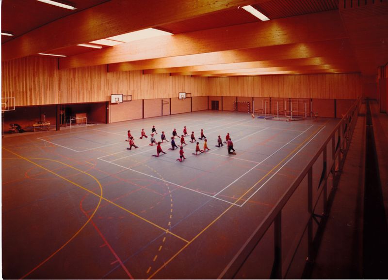 De eerste turnles van de gemeenteschool in de nieuwe zaal ...