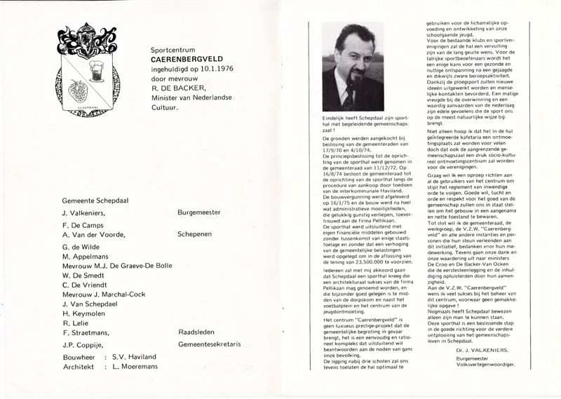 Inhuldiging sporthal Caerenbergveld januari 1976