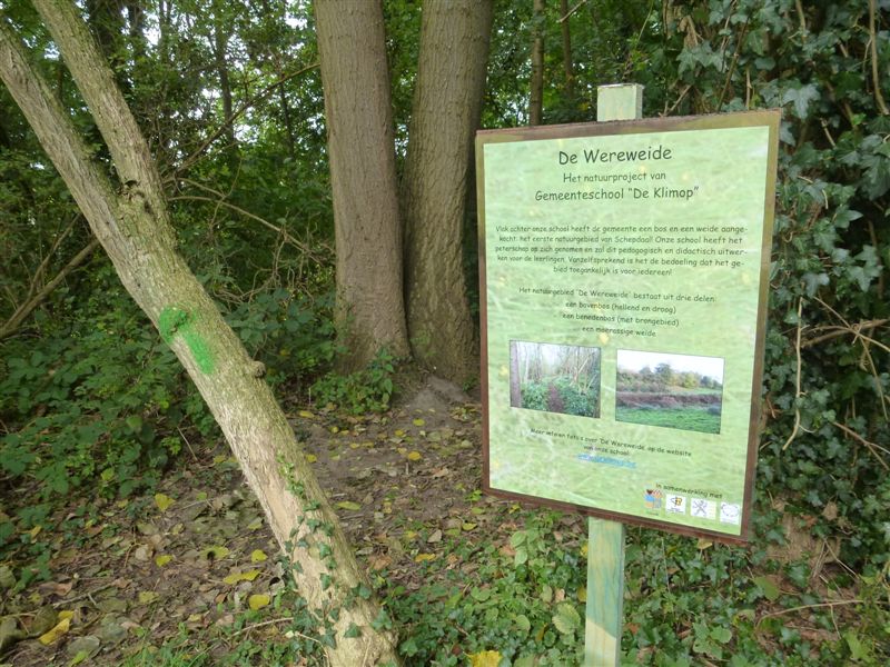 Info bij de takkenwal. Het enige bord dat het vandalisme overleefde.
